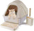 Upgrade Stainless Steel Cat Litter Box, XL Large Enclosed Cat Litter Boxes with Spacious for Big Cats, Premium Metal High Sided Litter Box Features Leak-Proof Design, Includes Scoop for Easy Cleaning - Khaki