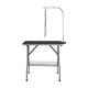 Easy Installation: This pet grooming table is incredibly easy to install, with just four simple steps: Step 1 - unfold the grooming table and place it level; Step 2 - clamp the two iron fixtures securely onto the table; Step 3 - attach the H-shaped double arms; Step 4 - finally, install the storage shelf.