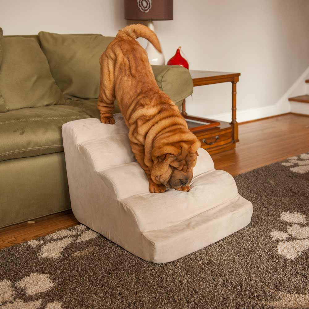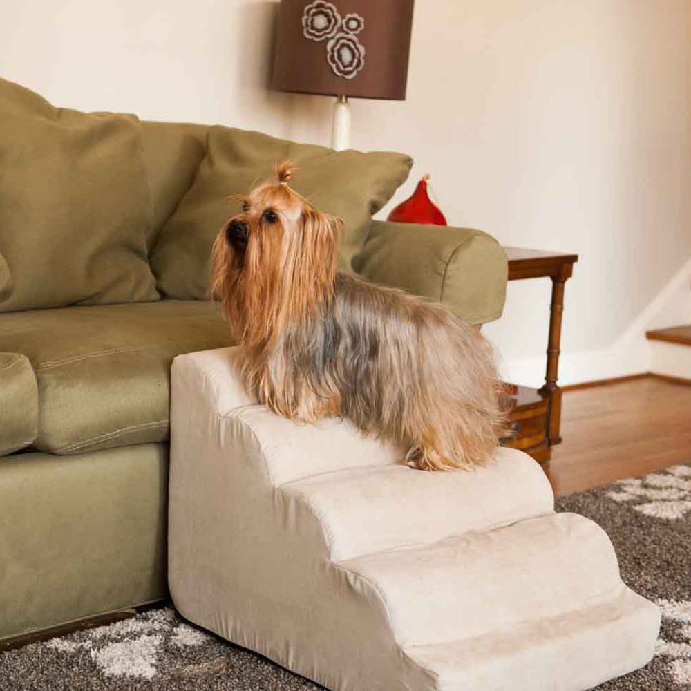 *Easy to Clean. No more dirty, smelly dog stairs – our microsuede covers are stain-resistant, water-repellant, and machine washable, too! Just remove the easy-off zippable cover to wash cold, then tumble dry low. Easy to keep clean means your dog always has a clean, fresh set of pet stairs to maneuver.