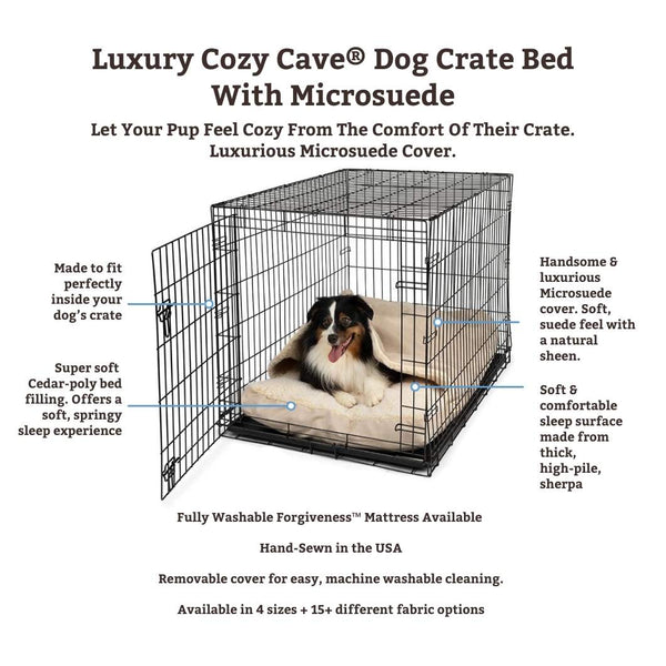 Is your dog a cuddler? A snuggler? A burrower? Then the Cozy Cave dog crate bed is just what you’re looking for! The hooded dog bed design lets your dog snooze between layers of soft Sherpa lining for the ultimate in enveloped comfort and coziness. Sleeping in the Cozy Cave dog crate bed is the next best thing to sleeping next to you, and your dog will love it!