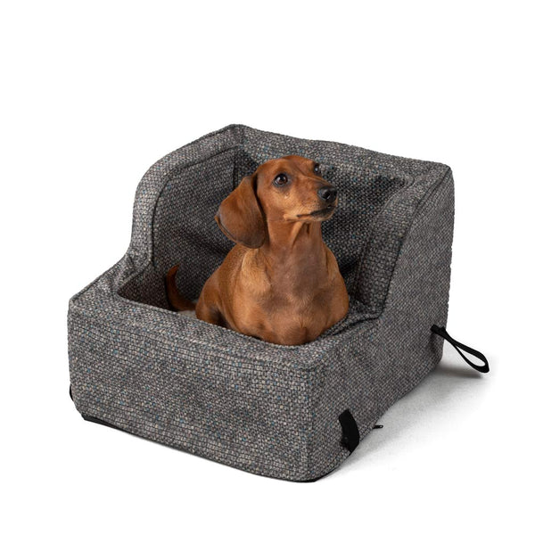 The Console dog car seat gives your dog a front-row view of the road right next to you! Designed for pets up to 12 pounds, it’s especially great for dogs who get carsick or anxious in the car, as seeing outside can help calm anxiety and reduce queasiness. Even dogs who dislike car travel can learn to love it once they have their very own secure, comfortable spot to snooze in and look at the world go by.