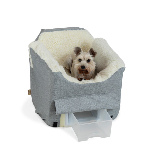 *Plush Comfort. This Sherpa dog car seat lining is oh so soft and snuggly! Your dog will love the snuggly softness of this Sherpa dog car seat, which helps your dog relax in supreme comfort for truly restful ride.
