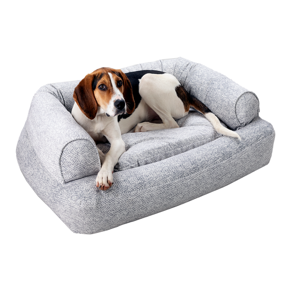 Snoozer®’s latest dog sofa is the ultimate in luxury, support, and comfort.  The “Sleeper Sofa” by Snoozer® brings a modern approach to our signature sofas.  The pillow style bolsters combined with a removable memory foam mattress helps relieve stress and pain in senior dogs and provides pups of all ages a supportive resting place.  Available in our luxury upholstery-grade fabrics, the “Sleeper Sofa” will complement any decor.