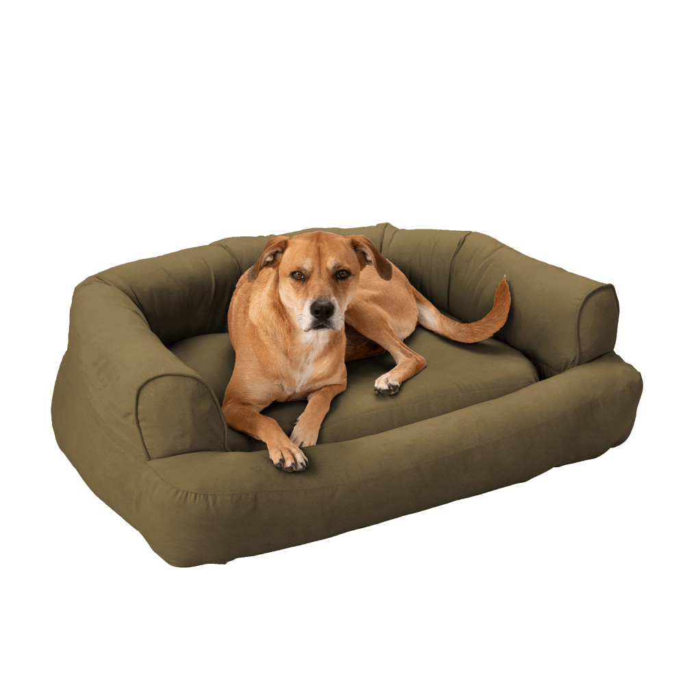 Snoozer®’s latest dog sofa is the ultimate in luxury, support, and comfort.  The “Sleeper Sofa” by Snoozer® brings a modern approach to our signature sofas.  The pillow style bolsters combined with a removable memory foam mattress helps relieve stress and pain in senior dogs and provides pups of all ages a supportive resting place.  Available in our luxury upholstery-grade fabrics, the “Sleeper Sofa” will complement any decor.