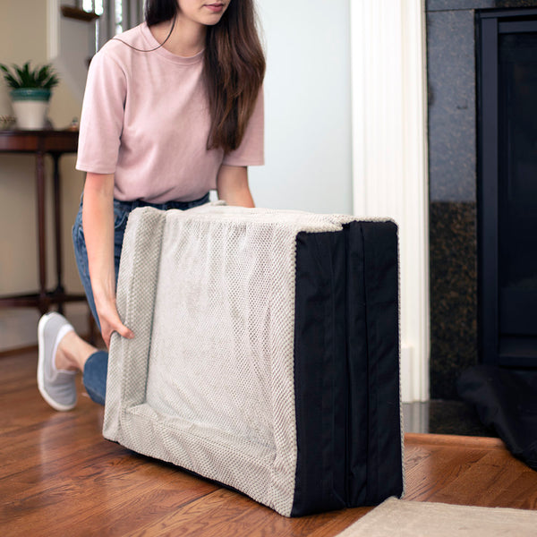 *EASY TO CLEAN. No more dirty dog beds! Just remove the cover to machine wash and machine dry. It couldn’t be easier to keep your dog’s travel bed clean for safe, healthy sleep, anywhere