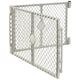 Measurements: 6 panels are approximately 5.5' across (corner to corner). 8 panels are approximately 6.5'-7' across (corner to corner). Each panel is 30" wide and 26" high. Space between panels is 2.25" wide. Diamond holes are 1.25" wide and 1.5" high. 4 panels enclose 6.89 square feet.