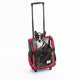 Unzip the bottom or top mesh panel to place your pet inside. If needed, a safety hook is located inside the carrier. Clip the safety hook to your pet’s harness or collar. Push on the center release button to fully extend the telescoping handle. Tuck the backpack straps into the rear storage pocket when wheeling your pet in the wheeled carrier.