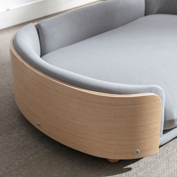 Scandinavian style Elevated Dog Bed Pet Sofa With Solid Wood legs and Bent Wood Back, Velvet Cushion,Large Size