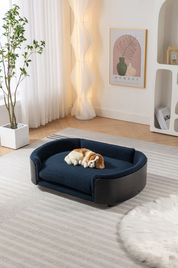 Scandinavian style Elevated Dog Bed Pet Sofa with Solid Wood legs and Black Bent Wood Back, Cashmere Cushion, Large Size