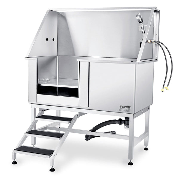 VEVOR 50" Pet Dog Bathing Station w/Stairs, Professional Stainless Steel Dog Grooming Tub w/ Soap Box, Faucet, Rich Accessory, Dog Bathtub for Large, Medium, Small Pets, Washing Sink for Home Left