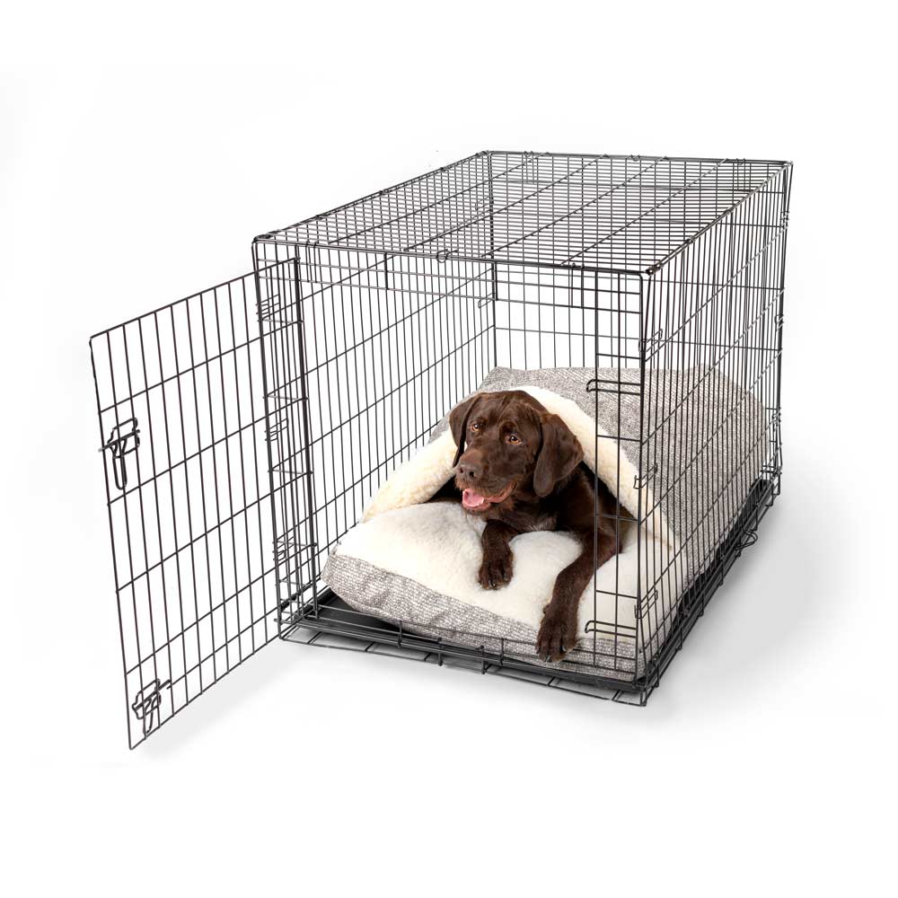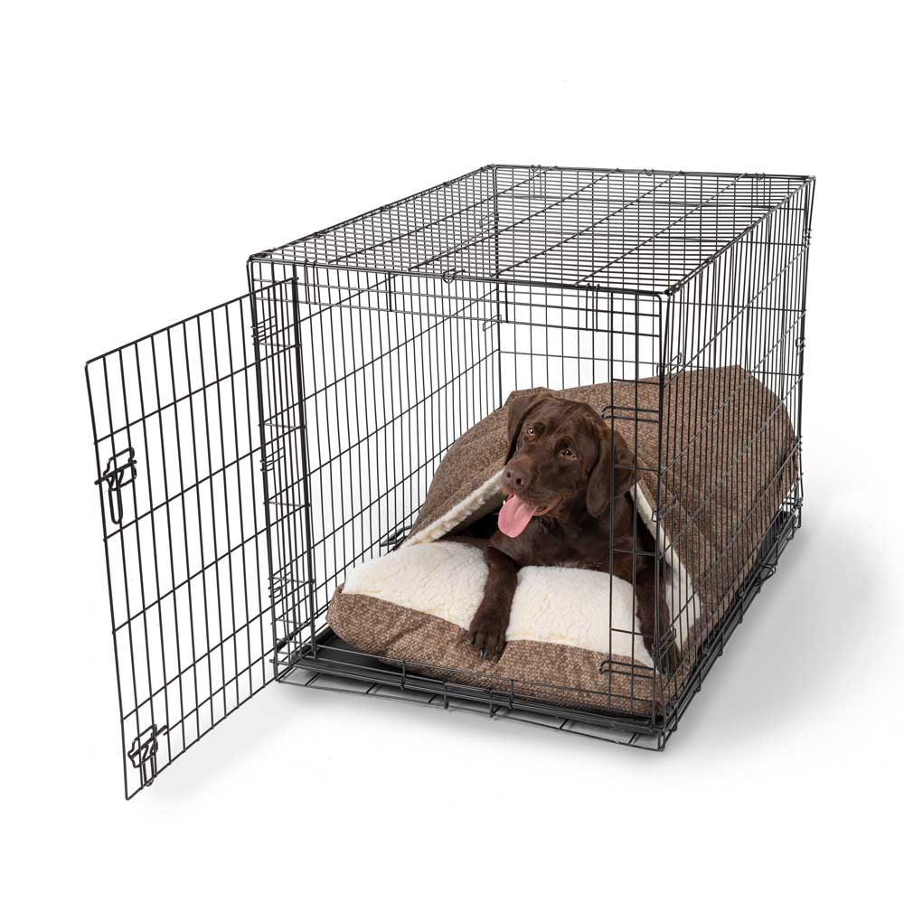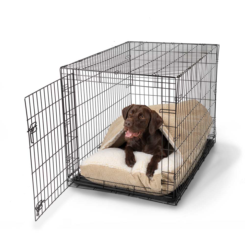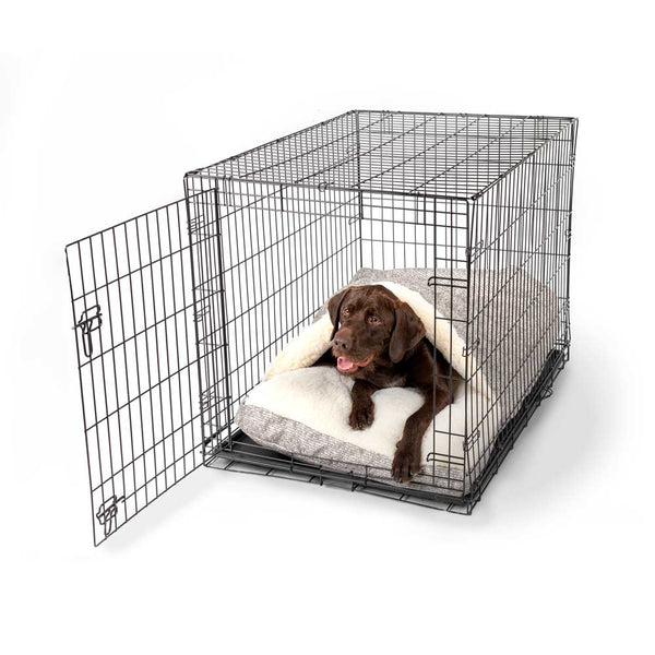 Is your dog a cuddler? A snuggler? A burrower? Then the Cozy Cave dog crate bed is just what you’re looking for! The hooded dog bed design lets your dog snooze between layers of soft Sherpa lining for the ultimate in enveloped comfort and coziness. Sleeping in the Cozy Cave dog crate bed is the next best thing to sleeping next to you, and your dog will love it!
