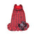 Classic city coat with gathered bottom and fleece lining. Details include lace trim around the neck, satin bow with rhinestone button and D ring. Velcro closures. 100% polyester. Red.